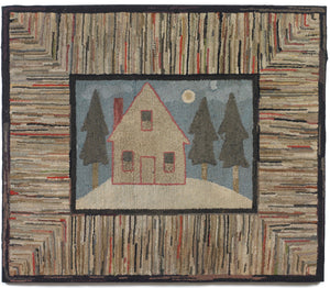 A simple house, surrounded by fir trees, with a full moon and clouds in the sky with a wide hit and miss border. Simple perfection!